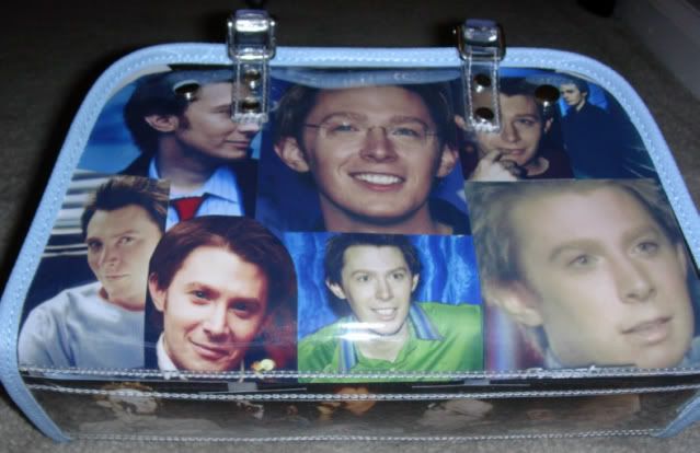 Last October when I met Kelly in NY in Charlotte, NC, she brought the most kick ass thing I had ever seen to be given away during the Broadfest raffle. It was a Clay Aiken purse that she had made using photographs of Clay and artfully placing them inside a clear tote bag made for this kind of thing.